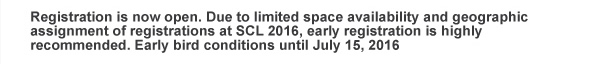 SCL 2016 which will be held from Sep 13-15, 2016 in São Paulo, Brazil. Programme is available at www.scl2016.com<x-msg://223/www.scl2016.com>. Due to limited availability and geographic assignment, early registration is highly recommended.