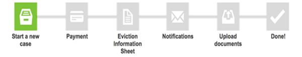 Process your evictions on Eviction 24/7 in about 7 minutes by completing 5 simple steps. First, select whether you want to only evict the tenant or also want to pursue a damage judgment. Next, pay via credit card on our secure servers, fill out the information sheet and add the persons you want to receive email status updates. Finally, upload your three day notice and lease. Eviction 24/7 does the rest.