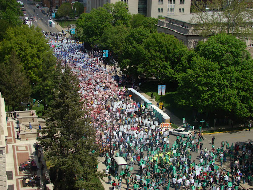 > > > With chants of "We'll remember in November" and "Save our schools. Save