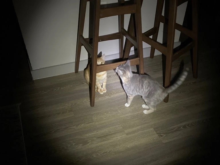 Shields visited the cats Pumpkin and Spice in an apartment complex with no power. Luckily, they brought a flashlight to find the felines in the dark. This allowed them to also send photos back to their owner to confirm the purring pair’s well-being.