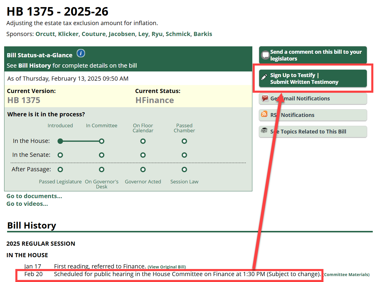 [WSBARP] Legislative Update - Estate Tax Exemption - Hearing Schedule 2/20 1:30pm